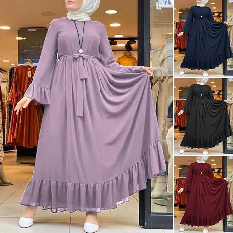 Women S Autumn Muslim Sundress Zanzea Elegant Ruffle Dress Casual Hijab Dress Female Hollow Maxi Vestidos Plus Size Robe Belted Price History Review Aliexpress Seller Zanzea Apparels Store Alitools Io